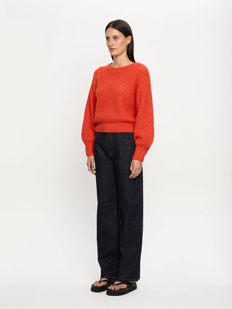 The Reine Knit is a relaxed fit featuring a blouson sleeve, ribbed cuff and is complete with stitching throughout.