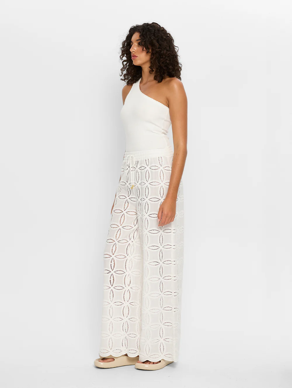 The Rio Pant is crafted from 100% Cotton Broderie and is a wide leg, relaxed pant silhouette. Featuring an elasticated waistband, adjustable drawcord with KIVARI signature cord ends, complete with scalloped hem finish. Pair with the Rio Shirt to complete the look.