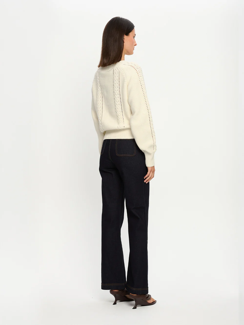 The Talia Knit is a relaxed crew neck jumper featuring crochet knit stripe detailing and is complete with a fitted cuff.